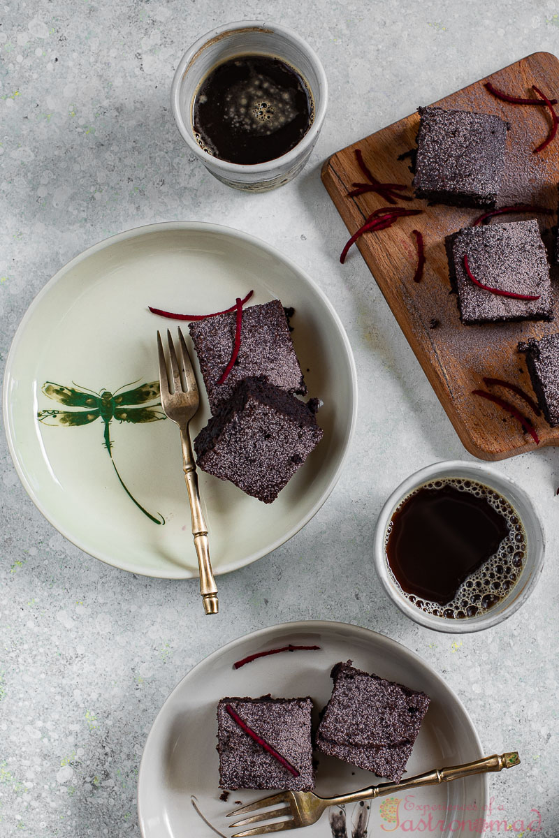 Well, a year passed by. And I had almost forgotten about these chocolate and beetroot brownies till this morning when my eyes rested on fresh-from-the-farm beetroot in the local vegetable market.