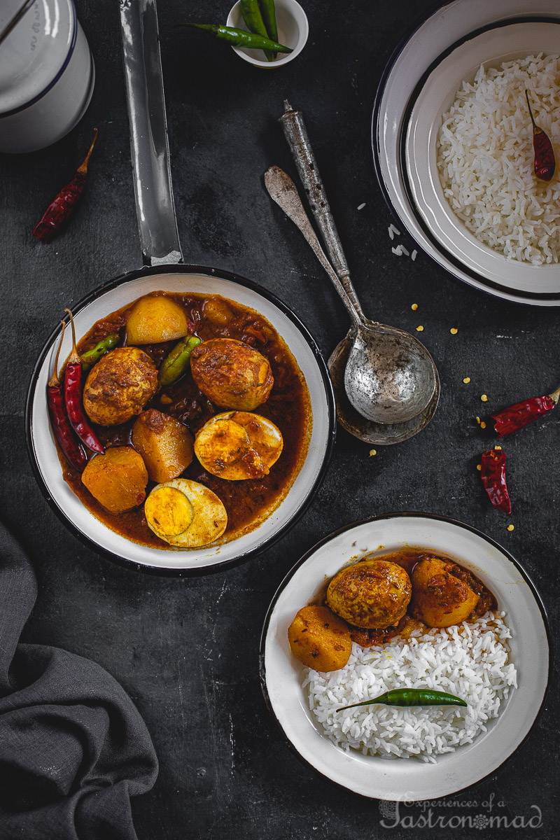 - Heat ghee in a small pan, add the hing, stir till a nice aroma is released. Carefully pour over the egg curry. Give it a hearty stir. Serve hot with steamed rice.