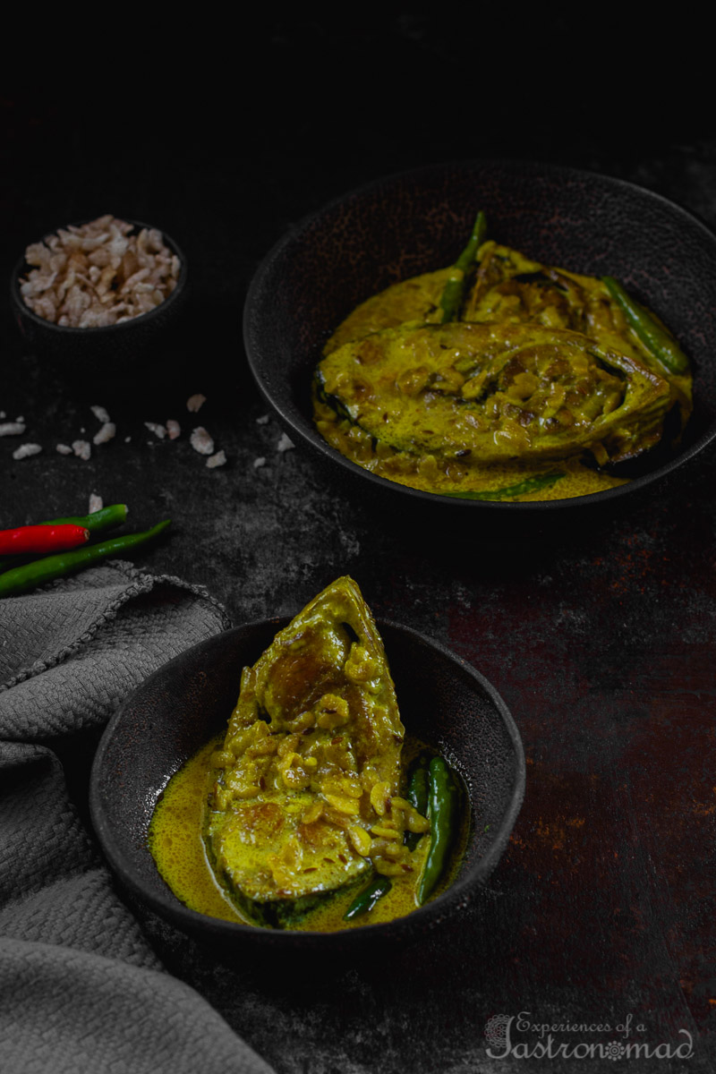Ilish Chirer Jhol. Pristine Ilish. Stewed in coconut milk. The perfume of chire. The earthy fragrance of cumin paste. The rage of chillies.