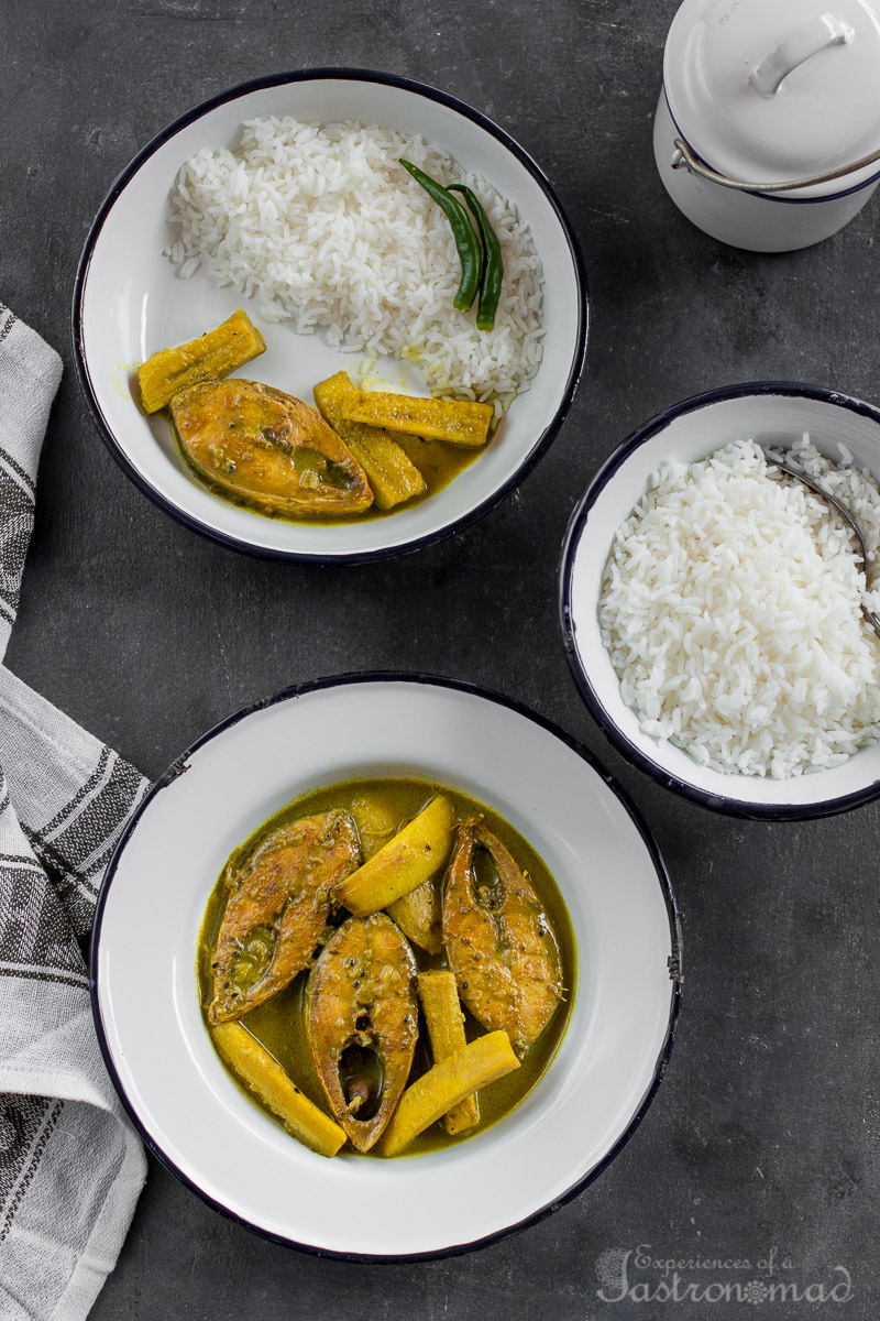 Next time you want something novel with your ilish, pair it with the unpretentious raw banana and let the ilish jhol send your taste buds to an ecstatic trance !!!