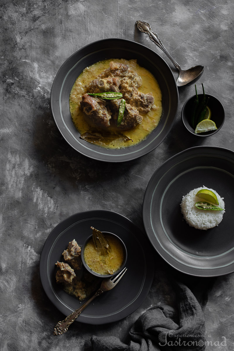 The outcome, a delectable fusion, mutton stewed over a fatigued flame, in milk and milk solids, perfumed just subtly with aromatic spices, spiked with chillies. Sublime !!!