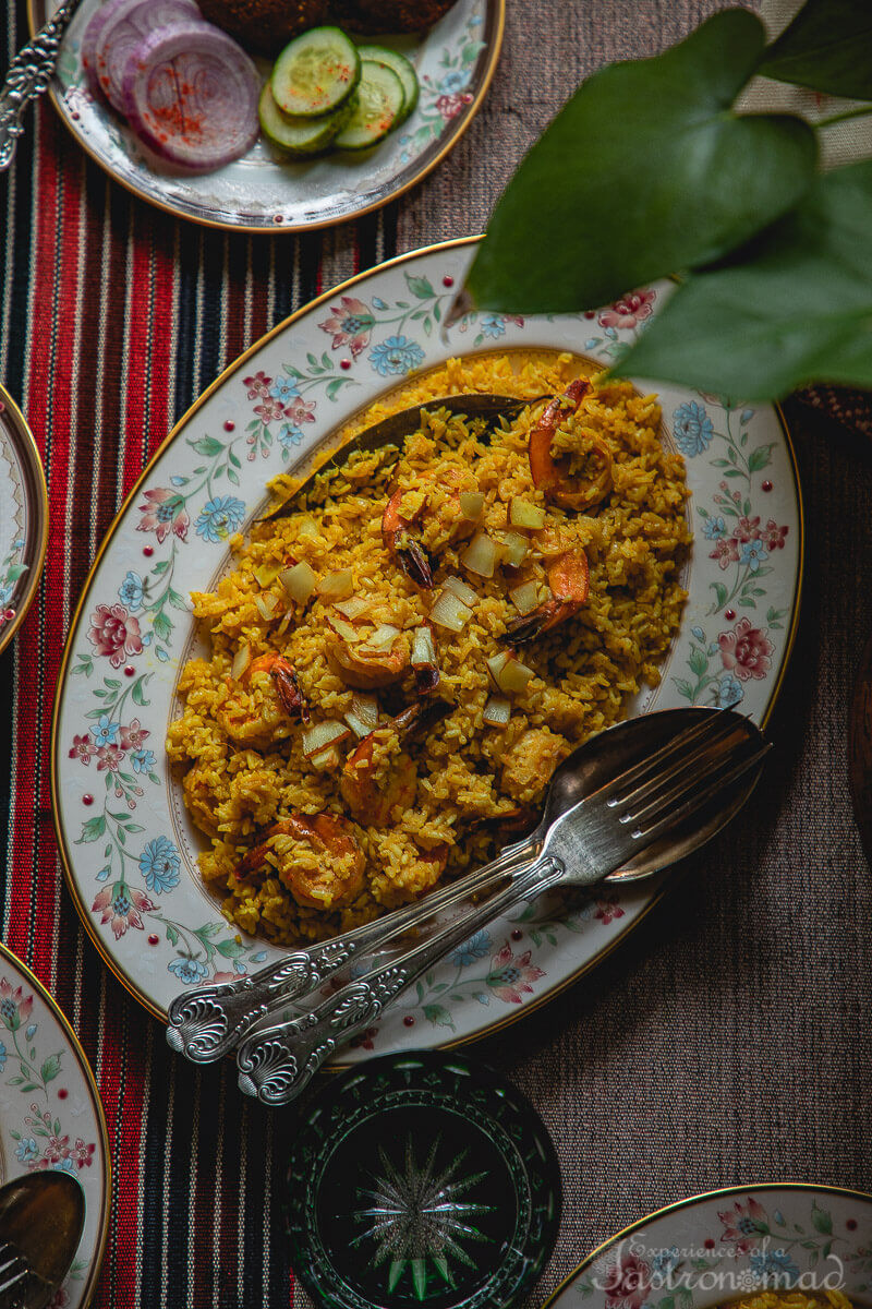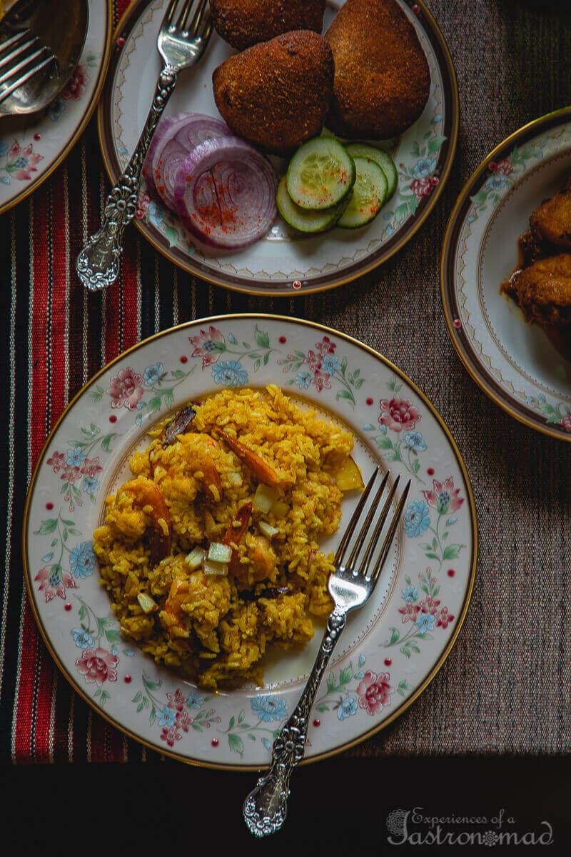 Narkel Chingri Pulao (Prawn Pilaf with Coconut)