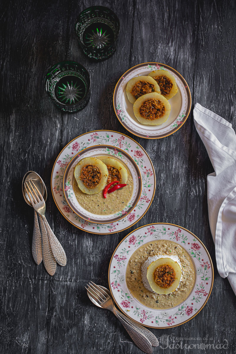 Pepe Dolma (Baby Green Papayas Stuffed with Fish in a Fragrant Milk Curry)